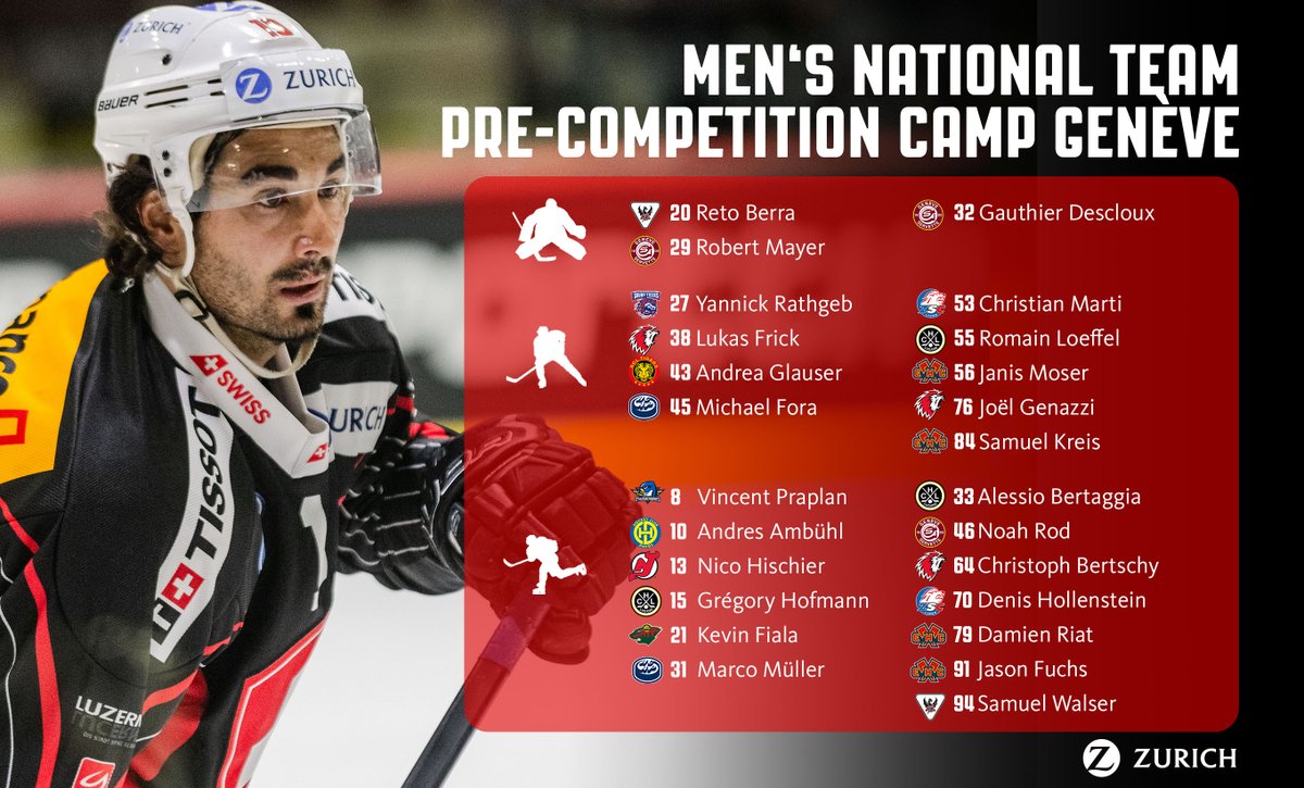 Jérôme Bachofner, Chris Baltisberger, Raphael Prassl (tous trois ZSC Lions) et Samuel Guerra (HC Ambrì-Piotta) ne font plus partie du contingent de l’équipe nationale. Enzo Corvi (HC Davos) s’est en outre blessé lors du deuxième match contre la Russie. Avec Kevin Fiala, Nico Hischier, Vincent Praplan et Yannick Rathgeb*, quatre mercenaires de NHL et d’AHL rejoignent l’équipe. L’attaquant du HC Davos Andres Ambühl et les Biennois Jason Fuchs, Samuel Kreis, Janis Moser et Damien Riat ont eux aussi été convoqués.